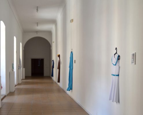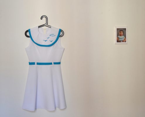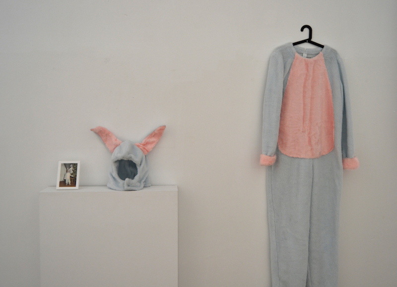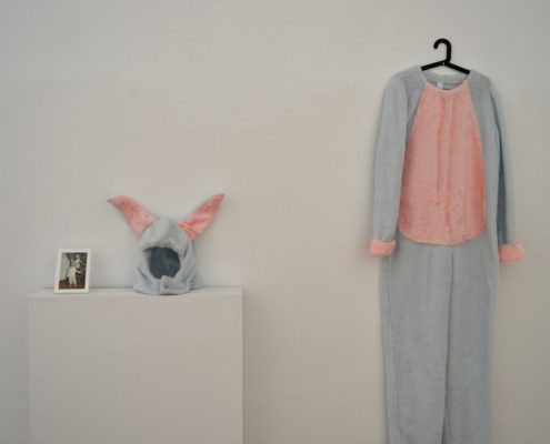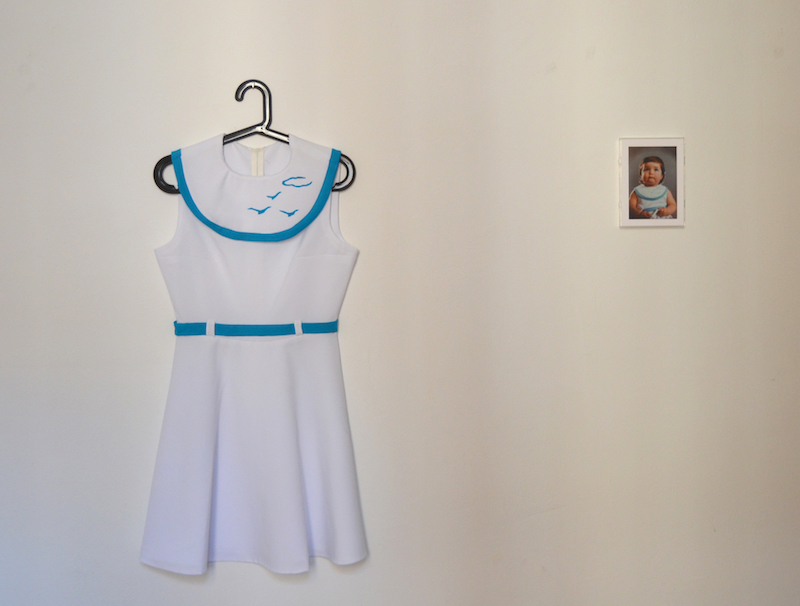 «Debido a la crisis económica, muchos jóvenes españoles estamos regresando a comportamientos propios de la infancia, pero en nuestros cuerpos adultos. Crecer duele, aunque ahora este dolor tiene que ver más con lo mental que con lo físico. Growing Pains revisa el concepto de reactivación de la memoria y consigue cierta complicidad con el espectador evocando sus recuerdos. Pero tras esta primera lectura se esconde un concepto mucho más perverso, que reflexiona sobre la infantilización de nuestra sociedad debida al periodo histórico que estamos atravesando (recesión, precariedad y dependencia familiar).Growing Pains es una reelaboración de micro-ficciones biográficas, todas ellas con un denominador común: jóvenes que viven en el hogar materno, o dependen económicamente de sus padres para poder vivir con la ficticia sensación de estar emancipados. Para realizar este trabajo he reproducido las prendas de la infancia de diez personas, sobredimensionándolos y adaptándolos a su actual escala adulta. Posteriormente, he realizado una toma fotográfica de la persona retratada portando ese traje en un instante de su vida cotidiana actual.»
